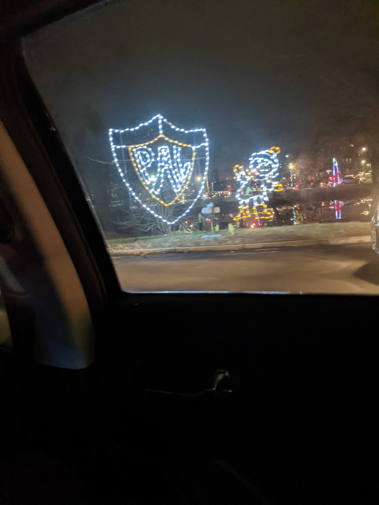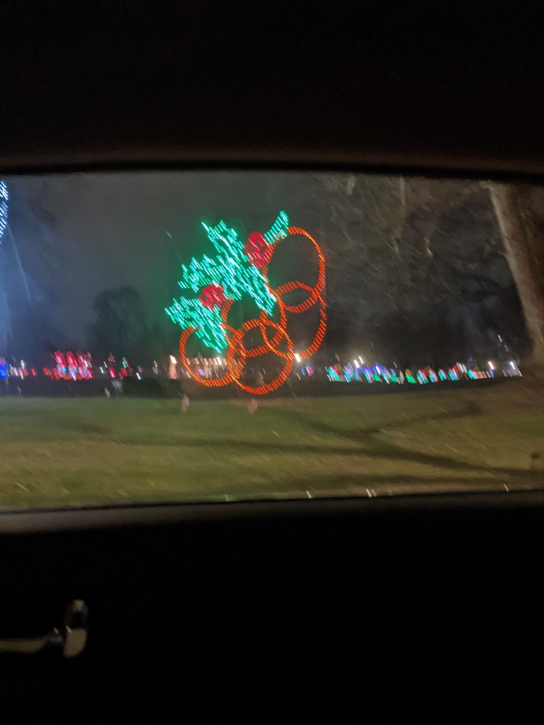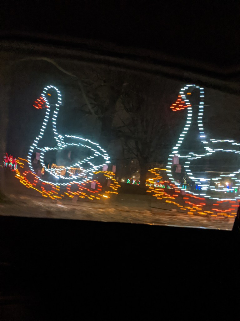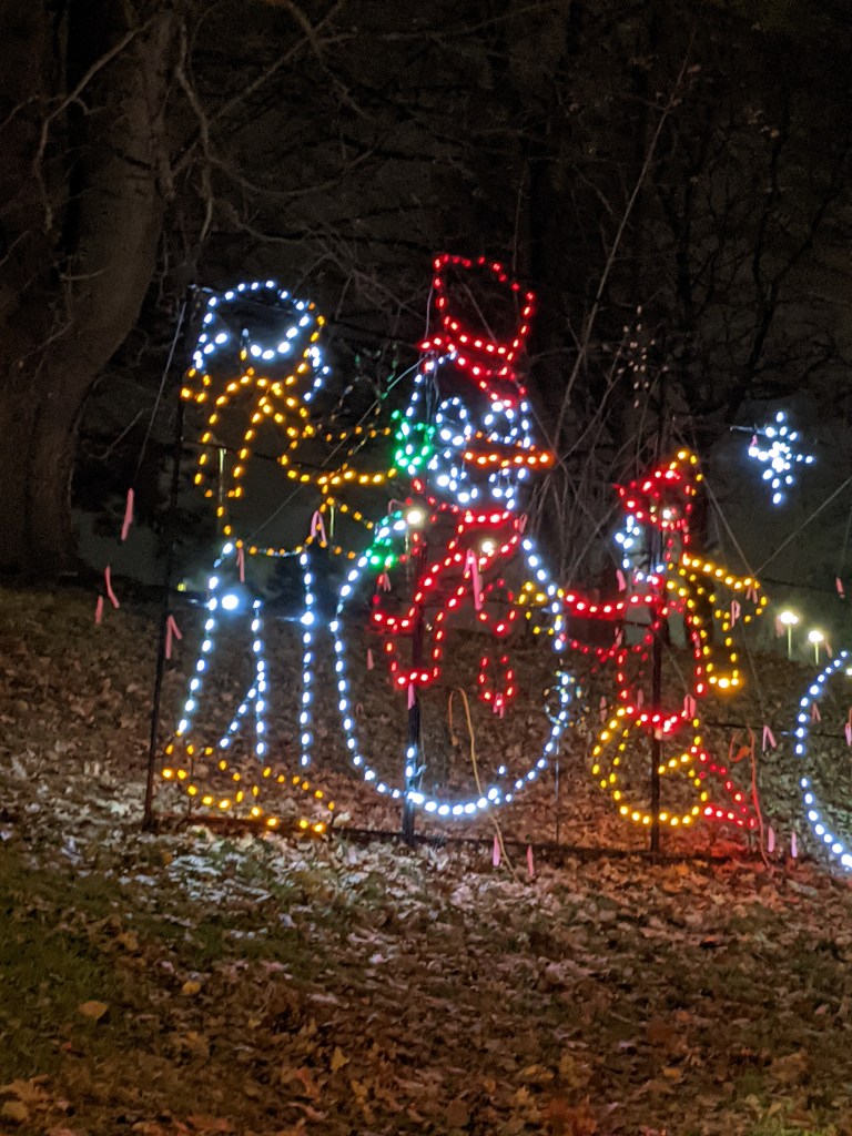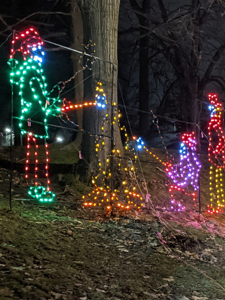 So with 2 friends, I went to the socially-distant Lights in the Park. For those not in the area, Washington Park is set up with light displays, courtesy of several businesses. They’re colorful, and a bit uplifting, and you don’t have to leave your car.