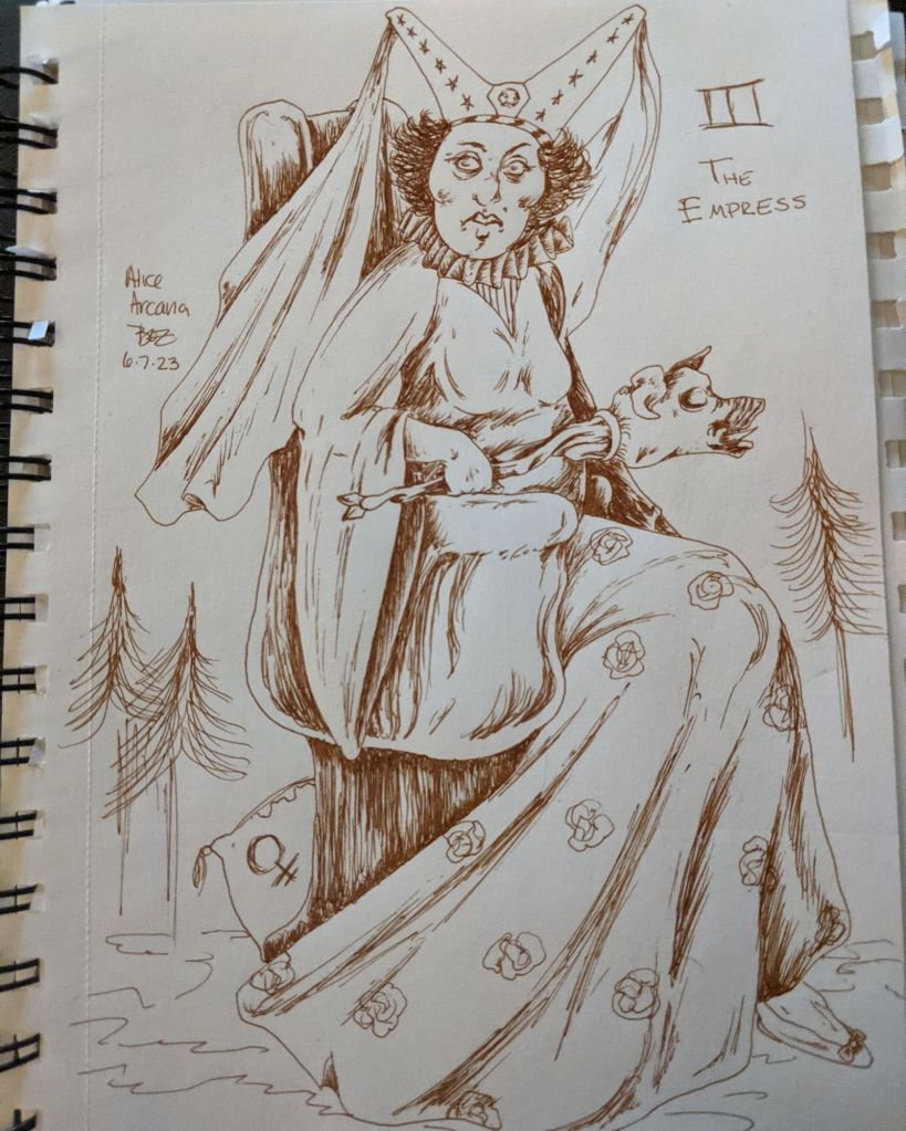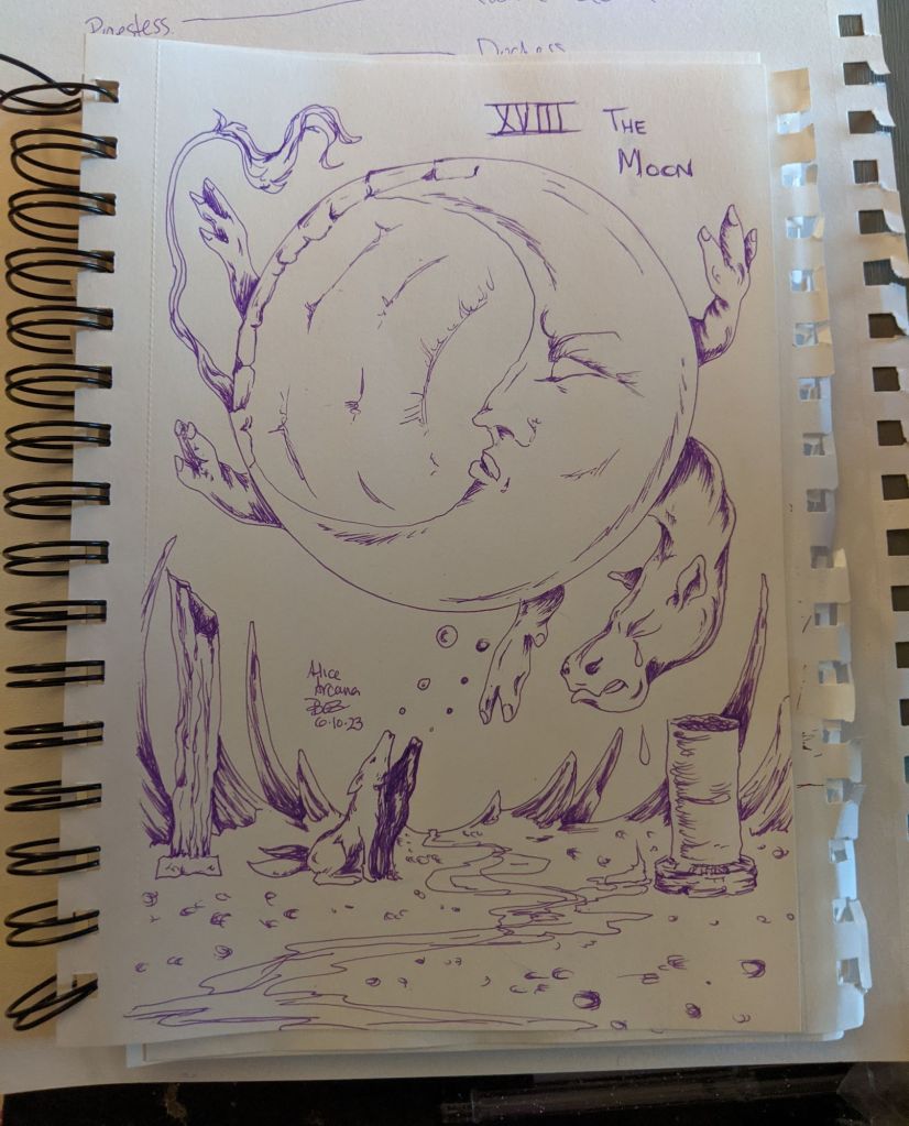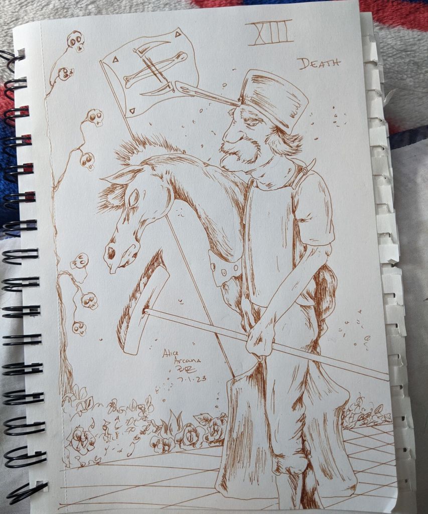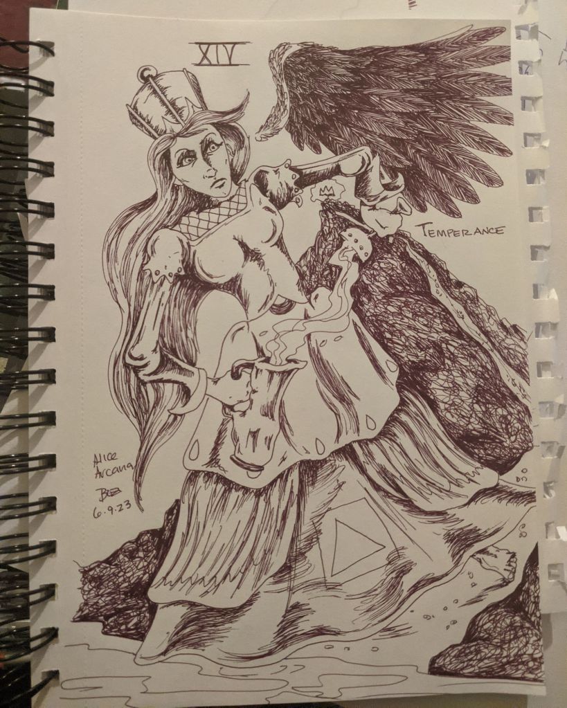 Admittedly there are several series I started but haven’t finished. Neener! I’m not showcasing all of them tonight. First up, the Major Arcana based on Alice in Wonderland characters. I think I have maybe five more to do, which will be easier once I find the master list I created. But, here’s some of the completed ones:
