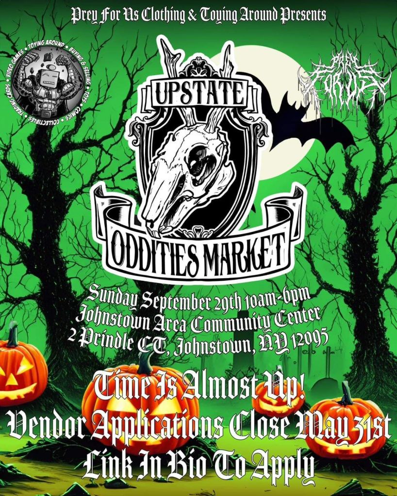 A somewhat dark-themed event, a bit horror, a bit goth, with very cool vendors. The last one had live music but I’m not sure if it will this time around. Sept 29th is the date, best see you there!